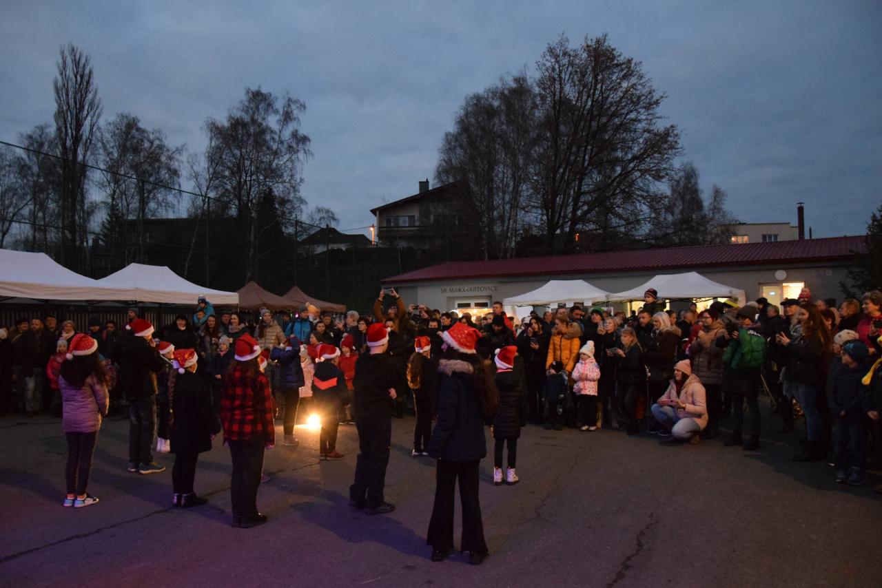 Fotografie z akce zahájení adventu, rozsvícení vánočního stromu, jarmarku a punče