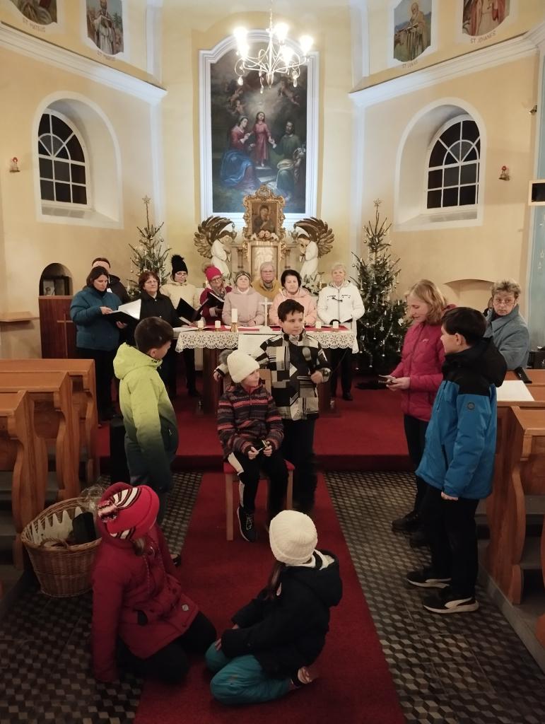 Tradici zlidovělého hudebního divadla prováděného v kostele, tzv. duchovních her, sledujeme už od středověku. Jejich autory a aktéry byli jak lidé vzdělaní, tak prostí venkované. Příběh o narození Ježíš Krista znovu ožívá ve vánoční hře skladatele a pedagoga Pavla Jurkoviče (1933-2015); když se ke mně tato hra dostala, napadlo mě zapojit do jejího nastudování místní děti. Pod vedením paní katechetky Lucie Kajzarové, vyučující náboženství v markvartovické ZŠ, se žáci „proměnili“ v andílky, pastýře, Marii, Josefa a Tři krále. Za vokálně instrumentálního doprovodu členek Hlučínského pěveckého sboru byla tato hra provedena v neděli 7. ledna v kapli Nejsvětější Trojice. V jejím závěru jsme si všichni společně, včetně posluchačů, s radostí zazpívali několik známých a oblíbených českých lidových koled za varhanního doprovodu pana Petra Münstra, jako ohlédnutí za končící dobou vánoční.