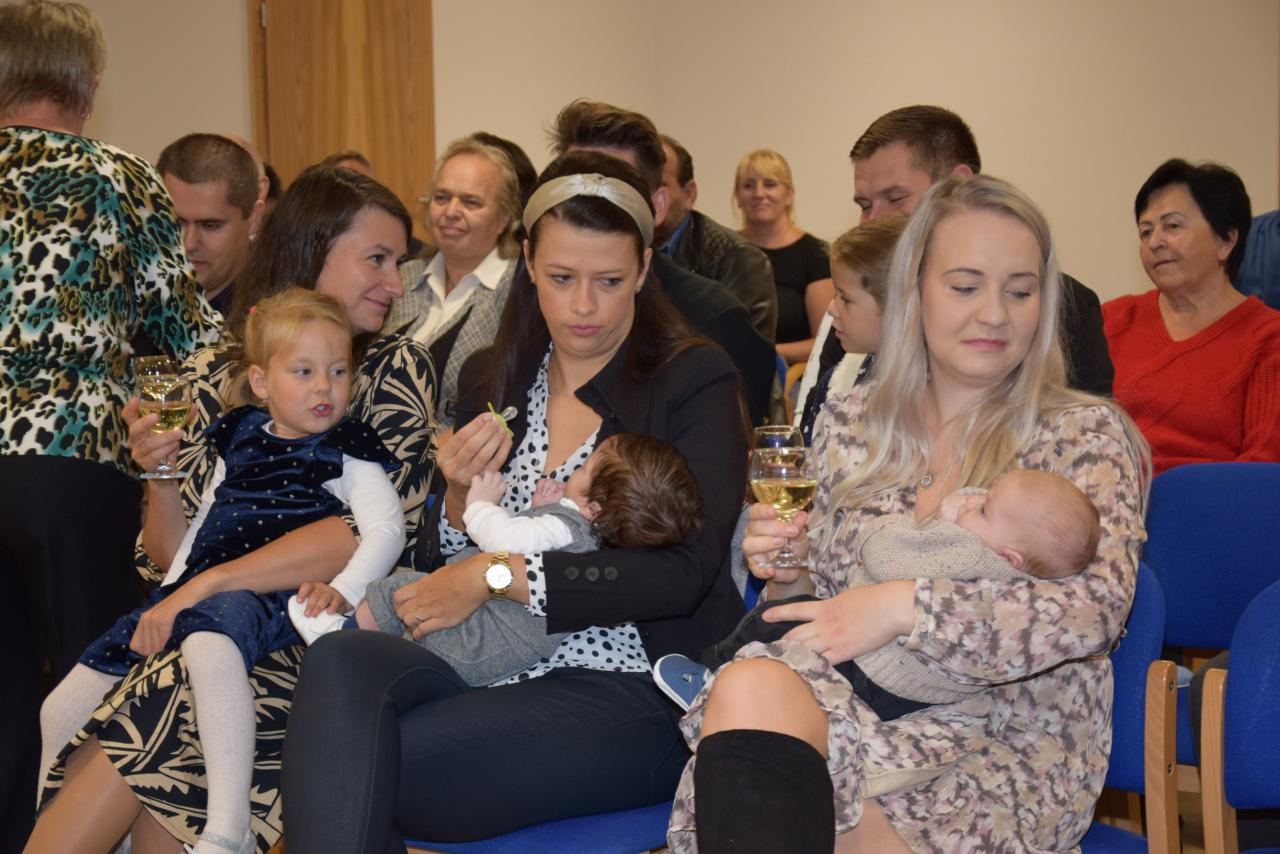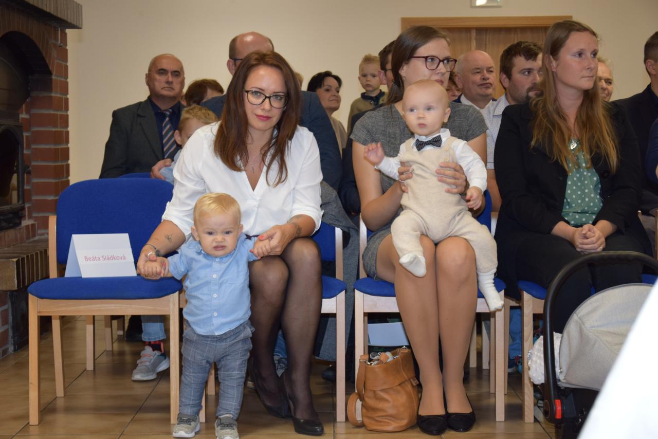 Šimon, Kryštof, Viktorie, Tobias, Adam, Hynek, Matias, Timea a Eliška – na prvním letošním vítání občánků v sobotu 5. října přivítali předsedkyně komise SPOZ a starosta obce 9 dětí. I tento obřad doprovázely svým vystoupením děti ze základní školy za hudebního doprovodu paní Barbory Bortlové.